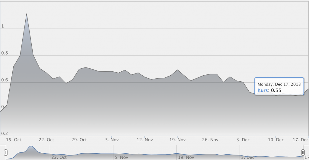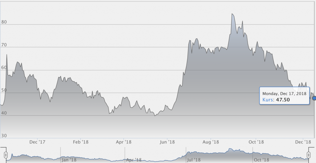 Företaget börsnoterades för över ett år sedan, i oktober 2017, och har sedan dessa haft både kraftig uppgång och nedgång. Innan kvartalsrapporten för Q2 2018 kom gjorde aktien en riktig rusning och hade den högsta noteringen sedan noteringen. Under andra kvartalet hade Climeon en ökad orderingång och tilltron för företaget satte fart på nytt. Den senaste tiden har aktien legat på en stabil nivå på strax under 50 kronor.