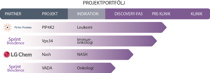 Genom att arbeta fram nya, innovativa läkemedelskandidater kommer bolaget över tid växa sin portfölj av läkemedelsprojekt som både genererar löpande intäkter i form av delmålsbetalningar under utvecklingsfasen och potentiella miljardintäkter i de fall läkemedel når marknaden.