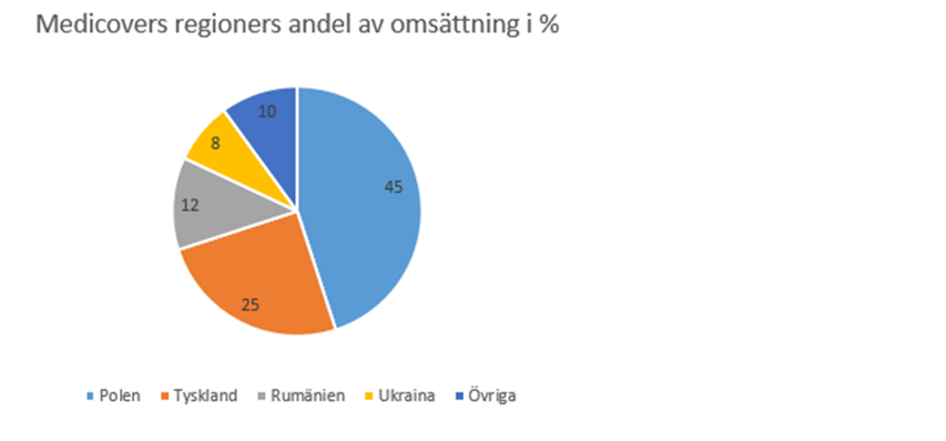 STOCKHOLM (Direkt) Vård- och diagnostikbolaget Medicover noteras på tisdagen den 23 maj på Nasdaq Stockholm. Introduktionspriset fastställdes till 56 kronor per aktie, i mitten av tidigare intervall mellan 49-63 kronor. Medicovers verksamhet är huvudsakligen fokuserad på marknader i Central- och Östeuropa. Det framgår av presentationen inför noteringen. Under 2016 avsåg 49 procent av bolagets omsättning hälsovårdsdelen och 51 procent av diagnostikdelen. Vid en fördelning av omsättningen på länder är Polen klart största land. Medicovers fördelning av omsättningen 2016 på enskilda länder.
